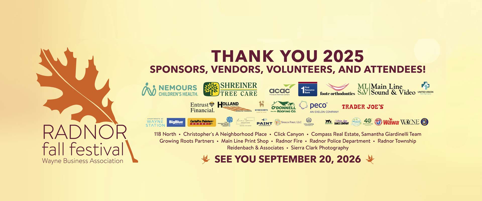 Join us for the 34th Annual Radnor Fall Festival, a cherished tradition brought to you by the Wayne Business Association!